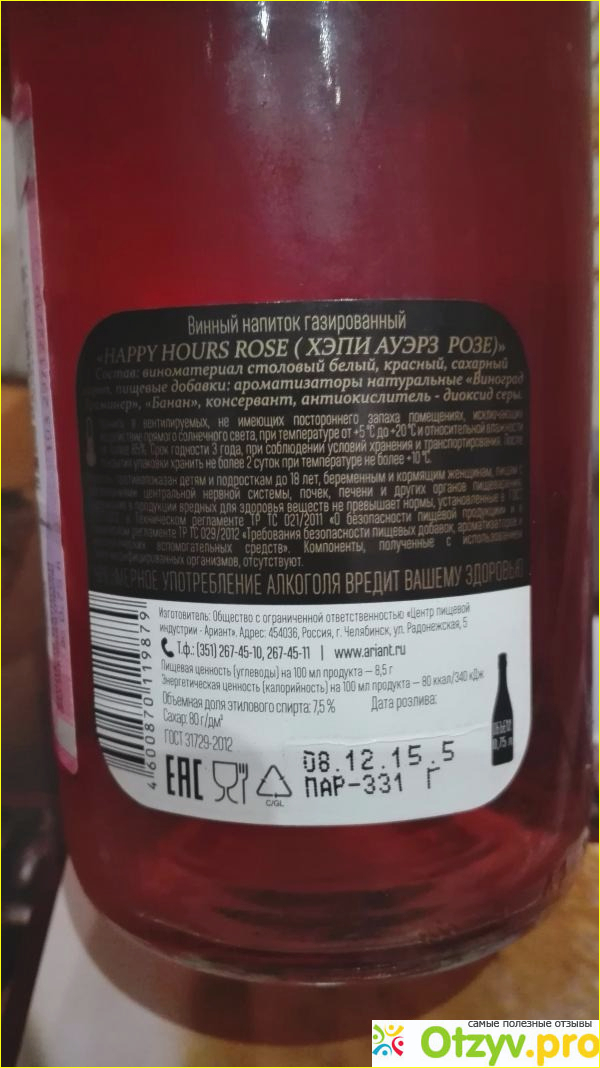 Если честно я не очень люблю бюджетные винные напитки. Но такой пить вполне можно, самое главное не нужно через чур переусердствовать. Еще раз повторюсь, что цена полностью соответствует вкусу, который есть у этого винного напитка. И кстати, Happy hours переводится, как счастливые часы. Плюс его еще в том, что у него достаточно маленький градус. На утро от него явно ни чего не останется. Ни какого похмелья после его не будет, если вы выпили умеренное количество. Но если больше положенного, то все зависит от вашего организма, как он отреагирует.