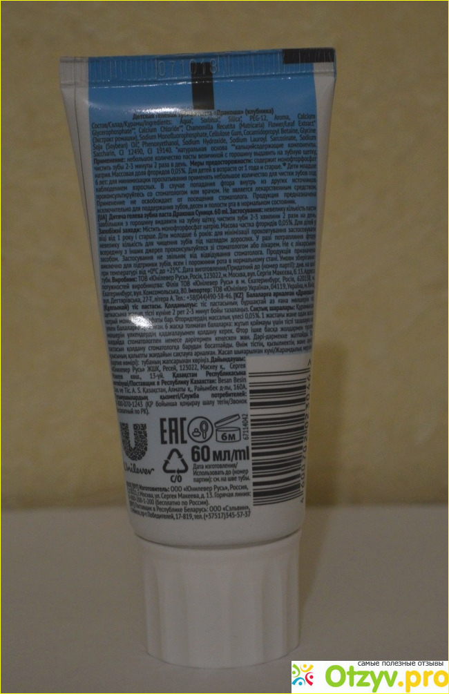 Вывод: Зубная паста "Дракоша" бюджетный вариант, который нравится детям. Сразу бросаются в глаза фразы "натуральная основа" и "безопасно при проглатывании". Хороший маркетинг, просто нет слов "Браво!" Подойдет она пожалуй тем детям, которые уже научились не глотать, а полностью сплевывать зубную пасту. Снижаю оценку, так как фосфорсодержащие пасты для маленьких детей не приветствую. В общем у меня двоякое мнение по этому товару...