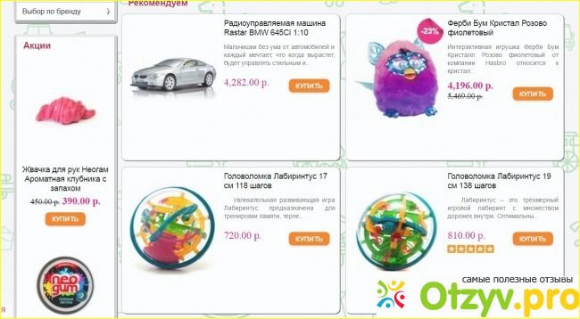 Среди категорий, на которые разделен товар в интернет магазине, вы сможете найти: игрушки, игры и творчество, спорт и активный отдых, покупки в детскую комнату, прогулки и поездки, малышам и родителям, коляски, автокресла. Также очень много приколов и захватывающих игрушек, которые вас непременно удивят и позабавят.
