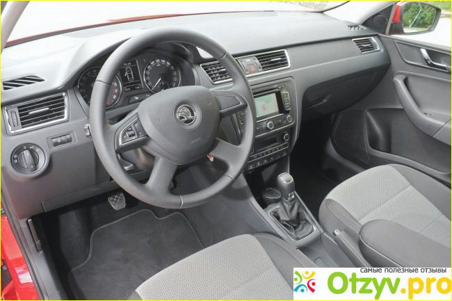 В принципе в салоне места предостаточно. Спокойно могут поместиться четыре пассажира. Коленями они не упираются в спинки передних сидений. Ну вот свободного пространства над головой не так много. Но головой об потолок не задеваешь. Задний пассажирский диван оснащен спинкой, которая откидывается. Регулировать по высоте ее можно. Сиденье водителя регулируется и каждый водитель, который сядет в автомобиль может под себя его настроить. Руль также имеет механическую регулировку по вылету и наклону. В более дорогой комплектации руль и рычаг коробки передач отделан кожей. На руле имеются кнопки управления мультимедийной системе. Также на руле присутствует логотипа "Skoda". Блок управления имеет климат-контроль, дефлектор вентиляции и множество других необходимых функций. Все приборы хорошо читаются и понятны. Также в салоне имеются различные USB входы, благодаря которым можно во время движения заряжать мобильные устройства. Имеются косметическое зеркало, очечник, подстаканники, которые находятся в центральной консоли автомобиля. И перчаточный ящик с подсветкой. Очень удобно, что в салоне предусмотрено множество различных мест куда можно положить разную мелочевку. Например, мелочь можно убрать в спинку кресла или кармашек в задние двери. Багажника имеет объем 500 литров. А если сложить спинку заднего сиденья, то он увеличивается в несколько раз. В багажном отделении присутствуют разные места для мелочи, чтобы можно было спрятать различные приспособления и инструменты.