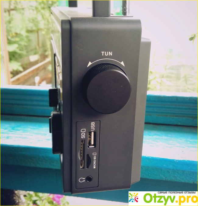 Радио оказался довольно приятным и очень понравилось отцу. В нём есть всё необходимое. Включается-выключается в крайнем положении слева, регулятором громкости. На FM стабильно ловит несколько станций, в том числе Ретро ФМ и Шансон. В принципе для полного счастья отцу этого хватает.)) На других волнах ловит множество иностранных каких-то станций, но почему-то преимущественно китайские и арабские. Регулировка поиска станций находится сбоку, колёсико двигается довольно упруго и приятно. Настройки не сбиваются. Есть выдвижная антенна, приём устойчивый. На удивление, хоть здесь и один динамик играет очень громко. Сбоку можно включить флешку или воткнуть карту памяти. Единственный минус на мой взгляд, что с флешки видит сразу все музыкальные композиции, а папки не различает. Спереди располагается удобный, довольно информативный дисплей, на котором отображается всё необходимое. Управление выбором композиций и прочими манипуляциями с флешкой находится рядом с дисплеем. Кнопочки нажимаются легко и приятно. Порадовало наличие входа для наушников на 3.5 мм., так что в домашних условиях отец может никому не мешать прослушиванием любимых радиостанций).