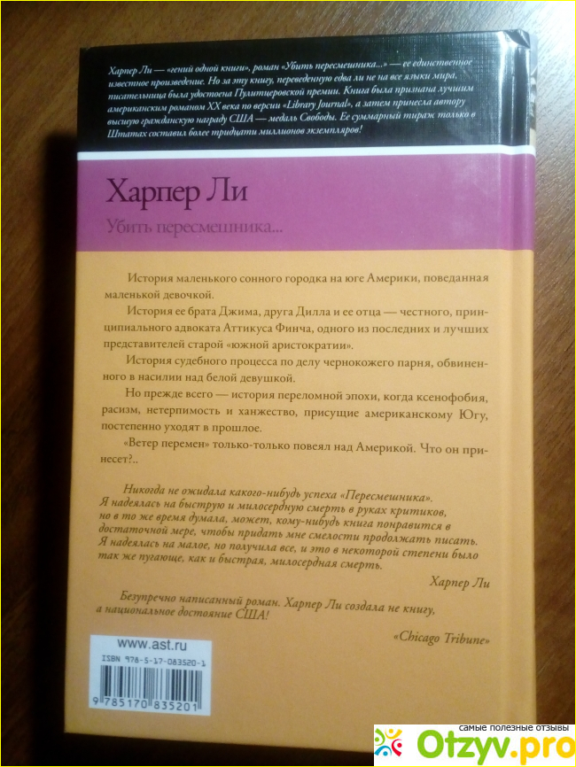 Помимо темы расизма, всплывает ещё масса жизненных тем. Книга оставляет исключительно положительные эмоции, несмотря на трагические события с героями, названными выше. Советую прочитать роман Харпер Ли. Такие книги нужно читать и перечитывать.