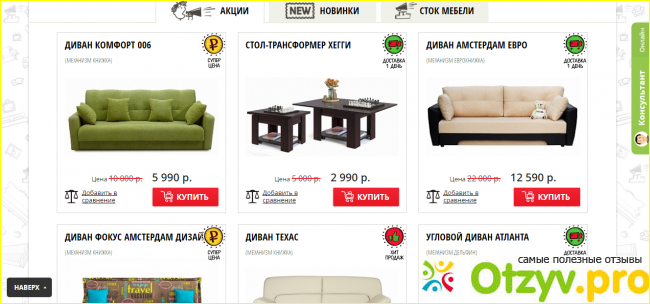 Конечно сразу на сайте начинает высвечиваться реклама с мега выгодными предложениями и диванами.