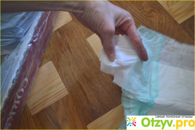 Сами подгузники по сравнению с другими относительно толстые и несколько жестковаты. Видела отзывы, что они как бумага - ну тут совсем не соглашусь, но по сравнению с другими харперами они действительно пожестче внутри. Впрочем, ребенку это не мешает абсолютно - не жаловался ни разу :)
