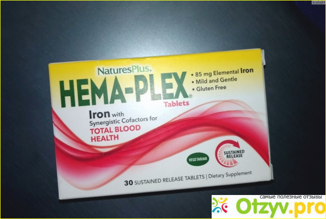 Итак, мы установили положенную норму концентрации железа в сыворотке крови, поэтому врач назначает препарат с железом. Одним из таких может быть герой моего отзыва: Hema-Plex от компании Nature’s Plus. Изучим весь его состав, фармакологические свойства, показания, противопоказания, способы приема и другие нюансы.