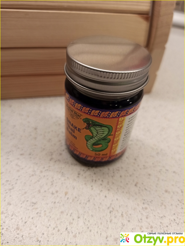 В его состав входят разные травы, компоненты кожных и костных тканей королевской кобры, а ее целебные свойства в народной медицине давно известны. Сам бальзам расходуется экономно, по консистенции он густой, беру размером с горошинку и под действием тепла тела он расходится и быстро впитывается.