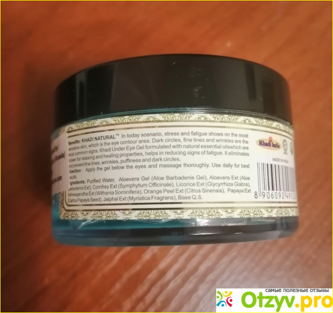 Неоднократно слышала, что индийская косметика славится своей натуральностью, особенно популярна Khadi. Но обратной стороной медали оказалось, что многие производители не отображают полный состав, в частности у KHADI только сертифицированная косметика имеет специальный знак, чего на баночке Under Eye Gel конечно, не было.