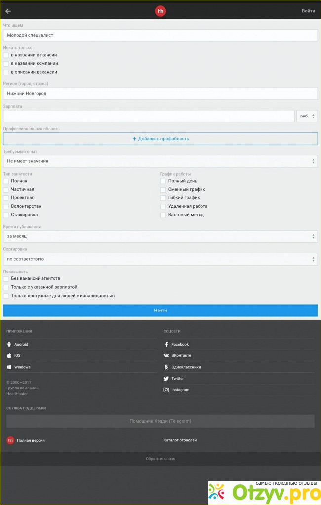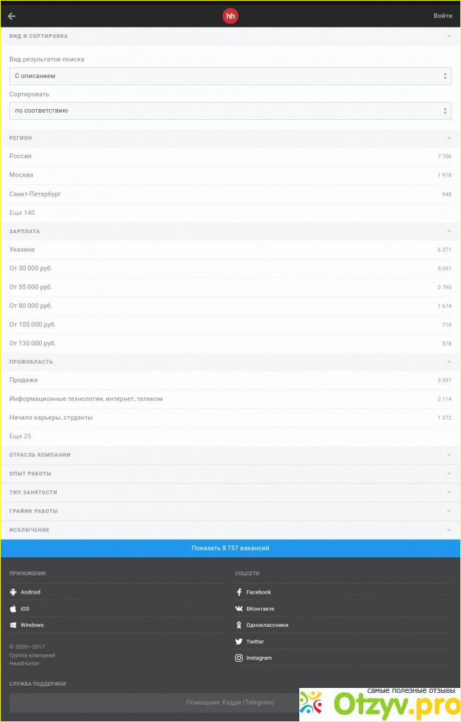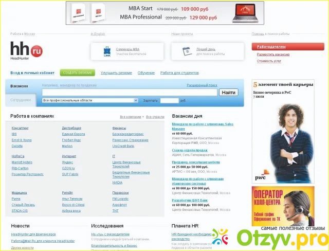 В целом из всех сайтов для поиска работы я во всех 3 случаях находила работу именно на сайте hh.ru. На сайте и предложений больше всего и активность работодателей самая большая.