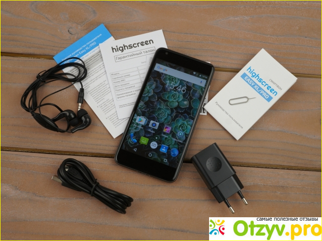 Внутри коробочки со смартфоном можно найти сам аппарат, usb-кабель(micro), инструкция, сетевое зарядное устройство, наушники с гарнитурой для общения.