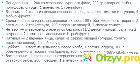 Вот четкий перечень продуктов в весовом ограничении, который я съела на этой решающей неделе химической диеты.
