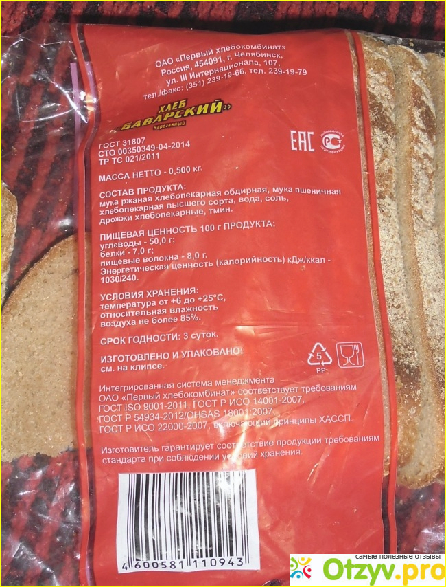 Состав у хлеба хороший, натуральный, можно прочесть его на фото ниже. Изготовлен хлеб по госту.