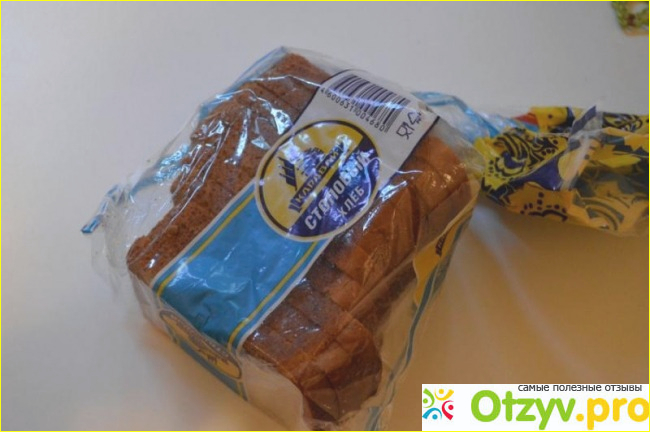 Открывая пакет с хлебом, мы чувствуем настоящий хлебный аромат. Мякиш у хлеба «Столовый» аппетитный, пористый. Вкус не кислый, что для нас очень важно. Но самое главное, это вкуснейшая корочка. Она всегда хрустящая, немножко твердая. Ее так и хочется съесть с растительным маслом и солью. Мы даже интересовались, почему такая корочка формируется при выпечке? Оказалось, что в соответствии с технологией изготовления (а хлеб готовится по ГОСТу), выпекают его на открытом огне в печке с кирпичной кладкой. Т. е. его пекут так, как выпекали наши бабушки в русских печках.