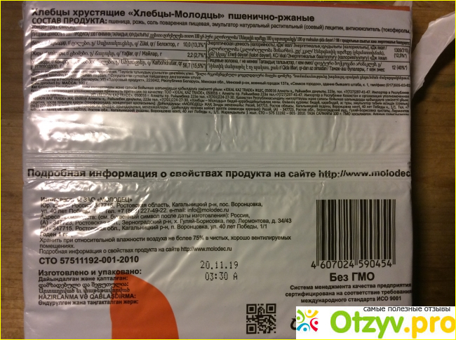 Изготавливают хлебцы хрустящие «Хлебцы-Молодцы» у нас в России проверенная фирма ЗАО «МОЛОДЕЦ»