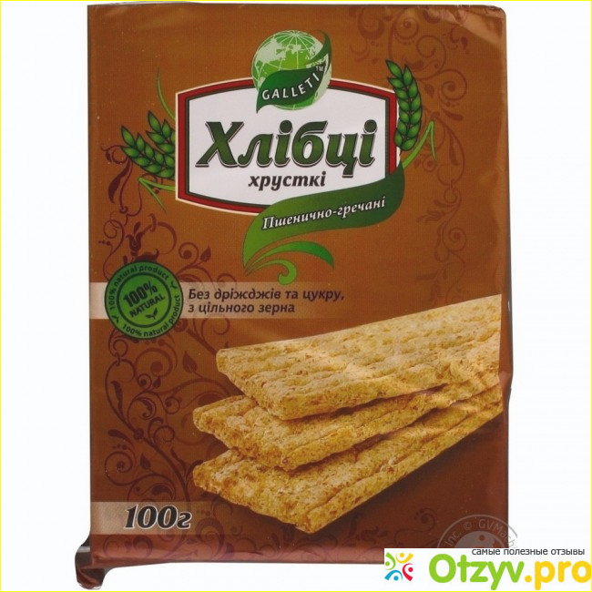 Во-вторых, они очень полезные, поскольку содержат много клетчатки и в них нет дрожжей, сахара. Такой продукт лучше усваивается, чем хлеб. Он не вызывает брожения, насыщает, наполняет энергией и улучшает работу желудочно-кишечного тракта. В составе продукта присутствует пшеница, гречка, вода, соль и растительный лецитин. Также эти хлебцы подходят тем, кто следит за своей фигурой, их калорийность составляет всего 320,18 ккал. Вес одной упаковки - 100 г. Хлебцы имеют форму длинных пластинок. Стоят не очень дорого - не более 7 гривен. Я их ем в любое время и с любыми блюдами. Мне нравится их есть с первыми блюдами, закусками, фруктами и овощами, различными сладостями, маслом и просто так. Их можно запивать чаем, кофе, молоком, соком, бульоном. При употреблении этого продукта я чувствую себя лучше, чем после хлебобулочных изделий, так как улучшается пищеварение, общее самочувствие и даже состояние кожи.