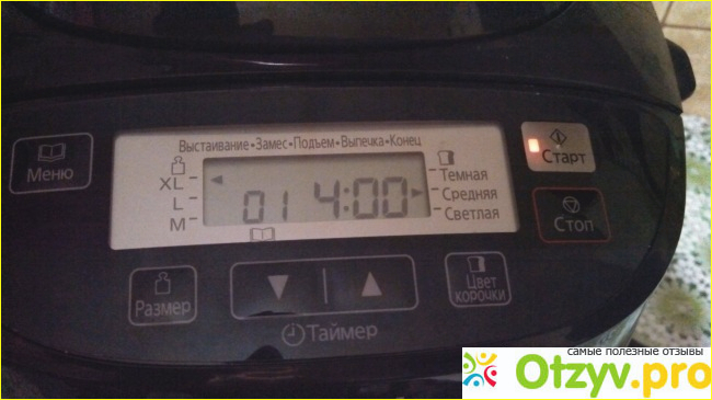 Дисплей монохромный и хорошо читаемый. Без подсветки. На нем можно выставить таймер, причемустанавливается время до завершения программы. Также можно указать номер программы, размер буханки, цветкорочки.