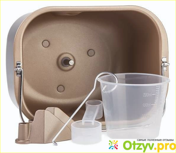 Сенсорное управление находится на верхней панели, где есть такие кнопки: меню, вес, корочка, + - время отстрочки, варка, замес, мультипекарь, старт и стоп, всё очень просто и легко, наверное сложно не понять будет. Выше этих кнопок располагается ЖК-экран именно на нём, высвечивается время приготовления, этап выпечки, вес хлеба и т. д, в общем всё, что она делает в тот момент. В комплект в упаковку входит сама хлебопечка, мерный стакан, две лопасти для замеса теста, мерная ложечка, крючок для снятия лопасти.