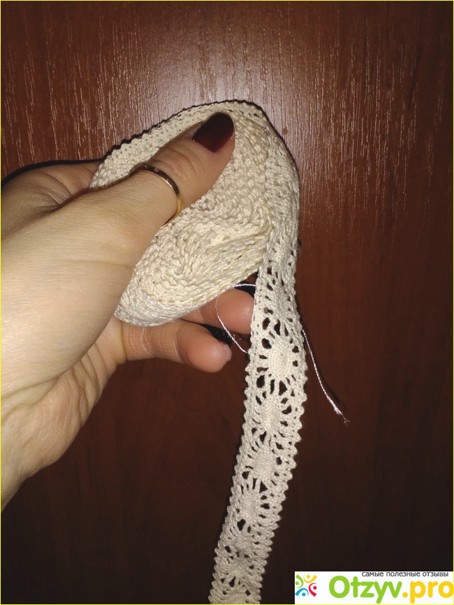 Кружево общей протяжённостью около трёх метров (я, естественно, не измеряла) по уверениям продавца, длина кружевной тесьмы составляет именно три метра. Я склонна ему поверить, так как тесёмка действительно длинная.