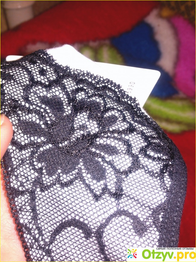 Кружево тянется, довольно неплохое по своему качеству. На мой взгляд, трусики выглядят очень достойно. Красивое цветовое сочетание чёрного и белого. Сзади трусики полностью чёрные, кружевная вставка только спереди.