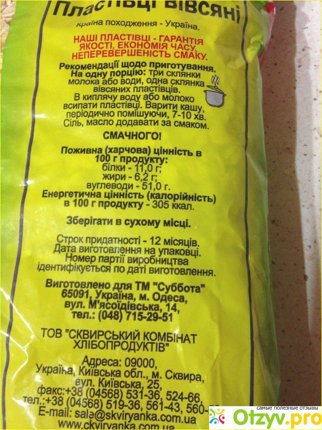 Недавно купила овсяные хлопья торговой марки Суббота.