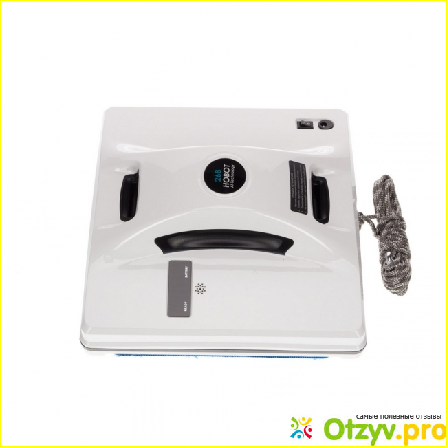 Для того, чтобы, при каких-либо чрезвычайных обстоятельствах резкого прекращения подачи электроэнергии, робот не упал, кроме страховки, в нем имеется резервный аккумулятор. В случае ЧП он поможет прибору удерживаться на стекле некоторое время, но работать, в этом случае, разумеется, уже не будет. Поэтому, при включении в сеть, необходимо подождать, когда он зарядится, а только потом уже устанавливать робота на окошко.