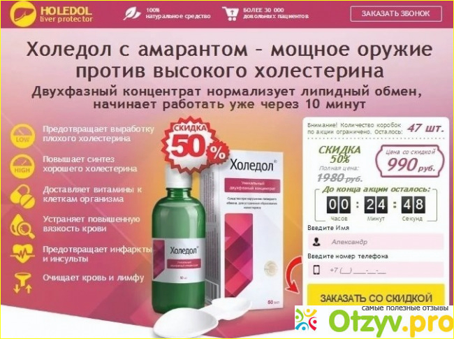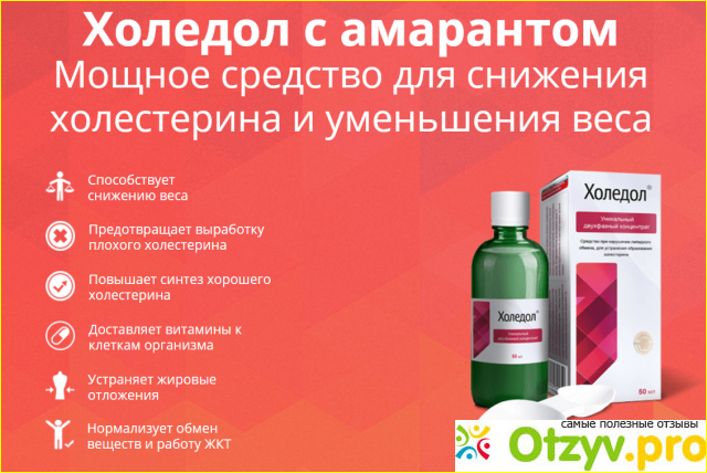 Препарат Холедол эффективно борется с холестерином в крови человека. Понижает его, стимулирует и восстанавливает работу клеток. Безопасен и легок в применении. Вполне можно обратить на него внимание, препарат относительно безопасен и безвреден. Реально может помочь избавиться от лишнего холестерина, нормализовать работу клеток, поднять общий тонус организма человека.