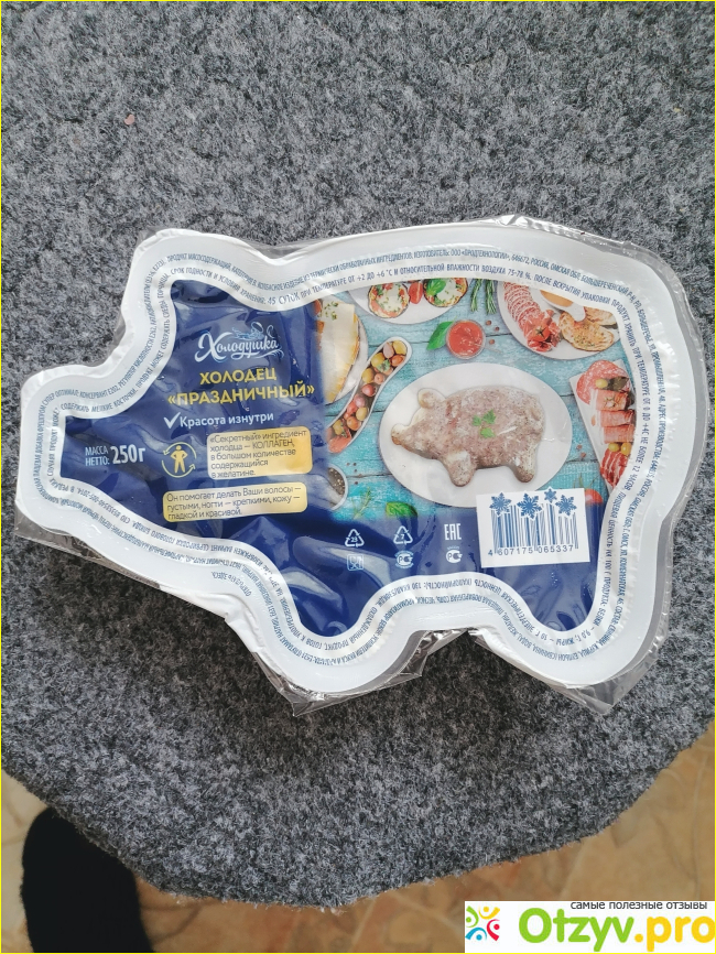 Данный холодец так то вкусный, есть специи, но многовато перца. Он чувствуется прямо. Соли и специй, кроме перца, нормально. Много мяса, оно не в виде фарша, а кусочками.