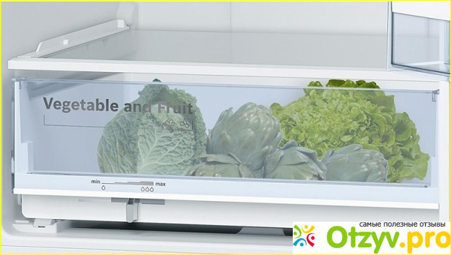 Радует достаточно удобный ящик для овощей с регулируемым разделителем на два ящика. Кроме того, что он удобен, он еще и очень вместительный.