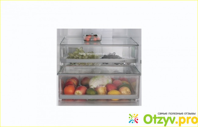 Полки из стекла, общим количеством три штуке. Имеется и зона свежести, туда мы с супругой стараемся класть недоеденную пищу, чтобы она не испортилась. Общий объем холодильника составляет 352 литра из них на холодильную камеру приходится 201 л, на морозильную - 104, нулевая - 47. Также внутри имеются ящики для хранения овощей и фруктов.