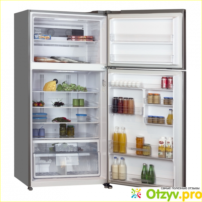 Общий полезный объем такой модели холодильника составляет 550 л, что довольно не мало.