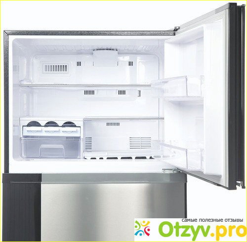 Сами отделения, у этого холодильника, конечно не столь огромные как хотелось бы, так как большая морозилка, не дала возможности его конструкторам, сделать салон сверх вместительным, как того многим бы хотелось. Поэтому, если у вас сверх большая семья и нужен именно большой салон, то тогда, конечно следует подыскать в этом плане, более вместительную модель.