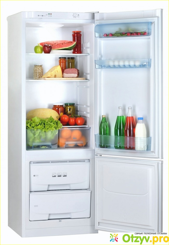 Покупали холодильник Pozis RK-102 мы в Эльдорадо и нам его даже бесплатно доставили прямо до квартиры. Еще в гипермаркете он мне приглянулся своим внешним видом за счет закругленных боков. Внутри все компактно: есть два ящика для хранения овощей и фруктов, полка одна большая закрытая, подставка для бутылок, есть лоток для яиц, а также несколько основных полок.