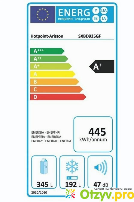 Объем холодильной камеры триста сорок пять, морозильной - сто девяносто два литра, по потреблению электроэнергии класс А+, работает совершенно бесшумно, когда купили я прислушивалась: работает ли.