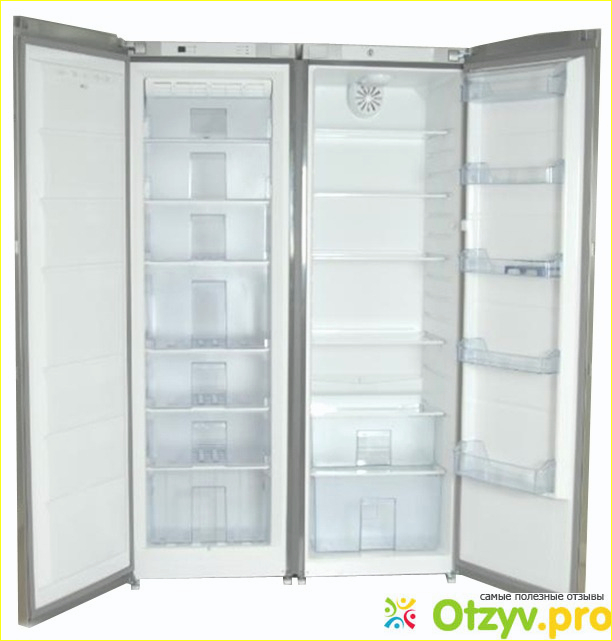 Холодильник не очень шумный. Уровень шума в такой модели составляет 44 дб. Объём холодильной камеры у такого холодильника составляет 350 литров, объём морозильной камеры - 341 литр. Тип компрессора у холодильника инверторный. У него имеется один компрессор.