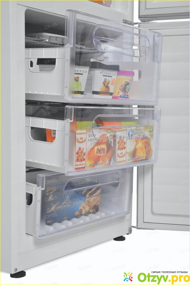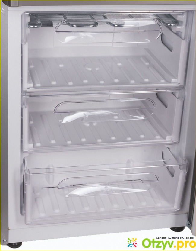 Никаких наворотов в данной модели вы не найдете, обычный технологических холодильник, который имеет довольно приличный объем, который составляет 285 литров. Морозильная камера у него расположена снизу, что очень удобно. Управление холодильником - элекромеханическое. Функции суперзаморозки и защиты от детей нет - но она нам не столь важна.