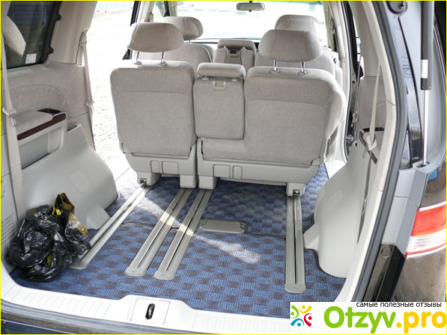 Заглянем вовнутрь салона, и убедимся, что она точно принадлежит к представительскому классу – здесь даже сиденья на третьем ряду идеально подходят для дальних поездок, что уж говорить про два передних ряда кресел? Места многовато, и отлично поместятся средней комплекции взрослые люди, я бы даже сказала “не японские” комплекции” (учитывая то, что товарищи японцы мелкие, то их там можно собрать целое собрание!) Ну, если конечно сядет один товарищи японец сумоист, то да, место будет маловато.