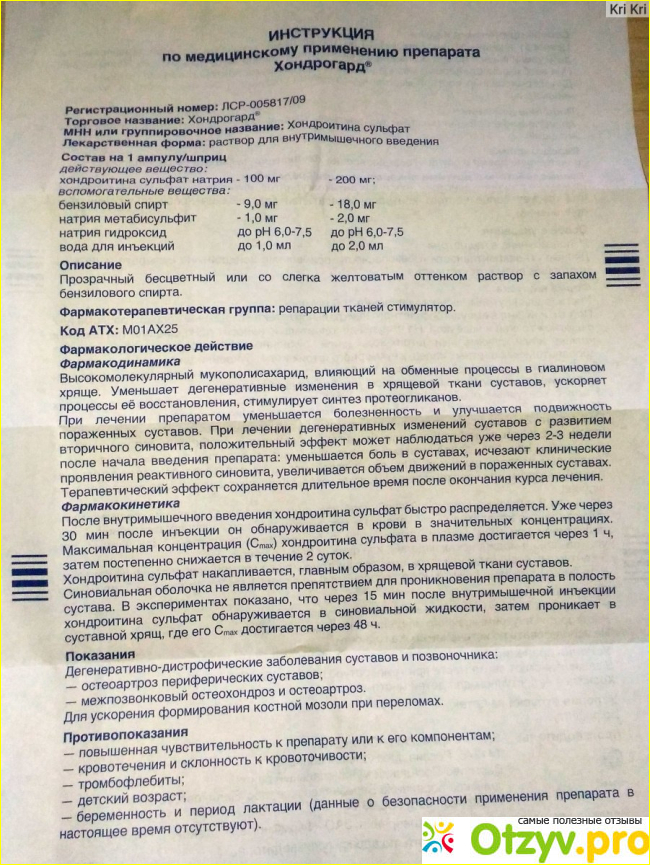 В больнице объяснили, что у меня остеоартроз суставов, возрастное, назначили пить таблетки для улучшения хрящей в суставах. Пропила почти месяц, хуже не стало, но и улучшений я не заметила. Попросила подружку- фармацевта подобрать мне что-то более эффективное. Она посоветовала Хондрогард- это тоже лекарство для восстановления хрящевой ткани в суставах, только в уколах. Для меня главное было, чтобы лекарство помогало, в уколах вроде как даже быстрее должно начинать действовать, поэтому я стала колоть эти уколы. И примерно через 4-5 дней заметила, что руки меньше болят, к концу второй недели лечения прошла отечность, пальцы перестали ныть. Курс лечения немаленький- 25 уколов, я проколола все, хотелось, чтобы наверняка все прошло. Из побочных эффектов на себе заметила только небольшие синячки от уколов, а так переносится нормально, не действует ни на желудок, ни на сердце. Лечением осталась довольна, если надо будет, то через полгода курс повторю, по мне лучше месяц уколы проколоть и увидеть результат лечения, чем несколько лет пить таблетки.