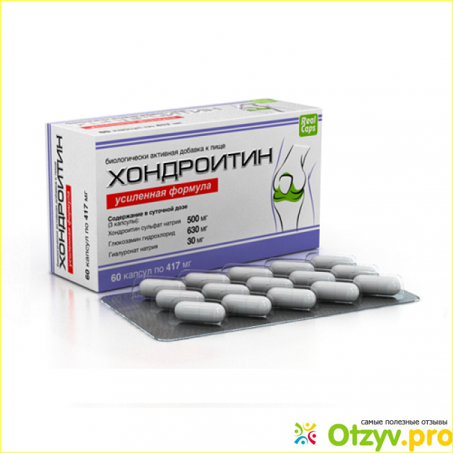 Его рекомендуют принимать на протяжении месяца. После употребления есть заметные результаты: это средство обладает обезболивающим и противовоспалительным действием. Хондроитин способен удерживать воду в полостях хрящевой ткани, в результате увеличиваются амортизационные свойства хряща.