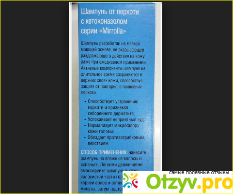 В целом, шампунь «Кетоконазол» от торговой маркиМирролла – хороший шампунь, помогает в борьбе с перхотью, только не стоит ожидать чудес, всё же это проблема идёт изнутри организма, это свидетельствует о нарушении микрофлоры и о ряде других факторов, поэтому к процессу избавления от перхоти стоит подходить комплексно, может даже посетить дерматолога. А как профилактический вариант этот шампунь также хорош. Я могу порекомендовать этот шампунь к покупке тем, у кого есть такая проблема, всё очень индивидуально, это средство может помочь и вам.