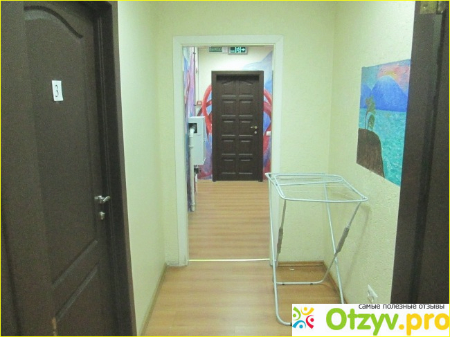 Конец коридора, несмотря на "революционность" раскрашен каком-то фантастическом стиле. там же души и туалеты - общие, мужские , женские. Есть стиральная машинка, кухня с холодильником, чаем и чайниками
