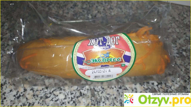 Хот-дог надёжно упакован и на упаковке указан срок годности.
