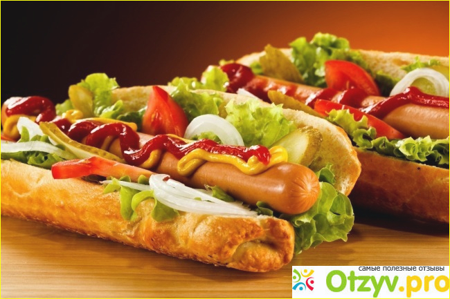 Вообще, хот-дог считается очень даже не полезной едой, но очень вкусной, сытной и любимой очень многими. Казалось бы, обычная булка с сосиской, вроде ничего особенного - просто бутерброд, но если к нему добавить разные овощи, соусы, кетчупы и другие ингредиенты, то это получается и красиво и вкусно. Понятно, что такая еда считается очень не полезной для организма человека и может привести к увеличению веса и другим не очень приятным последствиям для нашего организма.