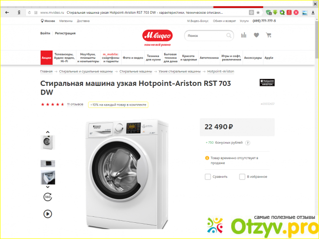 Все никак не могла я решиться на то, чтобы купить для себя стиральную машинку, в первую очередь ориентировалась на отзывы людей, так что смогла быстро определиться со своей помощницей и ею стала Hotpoint ariston rst 703 dw, потому что отзывы покупателей на нее чаще всего именно положительного плана и я не прогадала, она действительно прекрасно справляется со всеми своими функциями и программами. Стоит такая модель 22500 рублей.