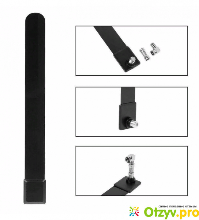 Посмотрим, что из себя представляет эта антенна: кусочек пластика низкого сорта, которая сгибается под пальцами. Обычная DVB-T2 антенна, которая принимает цифровой сигнал, устанавливается в комнатах, коэффициентом усиления минимального значения 2 dBi. Работать в полную мощность антенна будет если только близи находится телевизионная вышка. Если же на его пути будут стоять высотки, деревья, арматурные стены и прочие заграждающие сигнал элементы, то мощности сигнала хватит на 20 федеральных каналов и только.