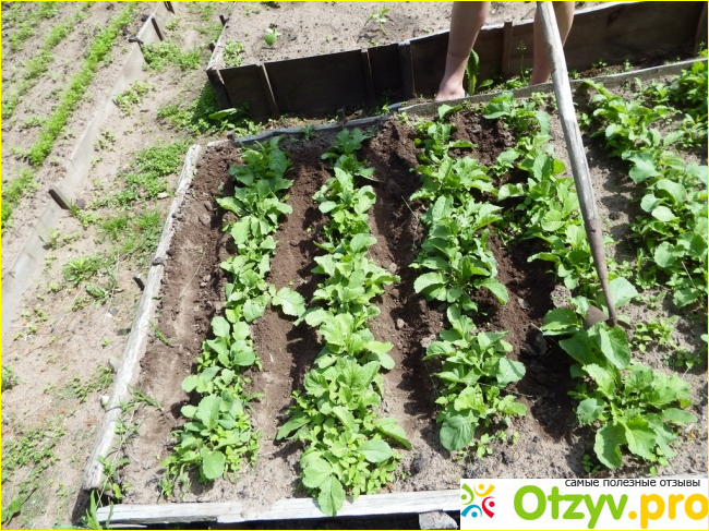 В этом году я решила посадить детку между редиской. Это и экономия площади и сохранение влаги в почве, что благоприятно влияет на посадку мелких луковиц.