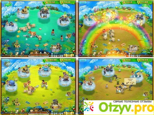 Очень понравился интерфейс игры, радует глаз. Очень нравится радуга в финале уровня-красиво. Минус, что все работники на ферме одинаковые.