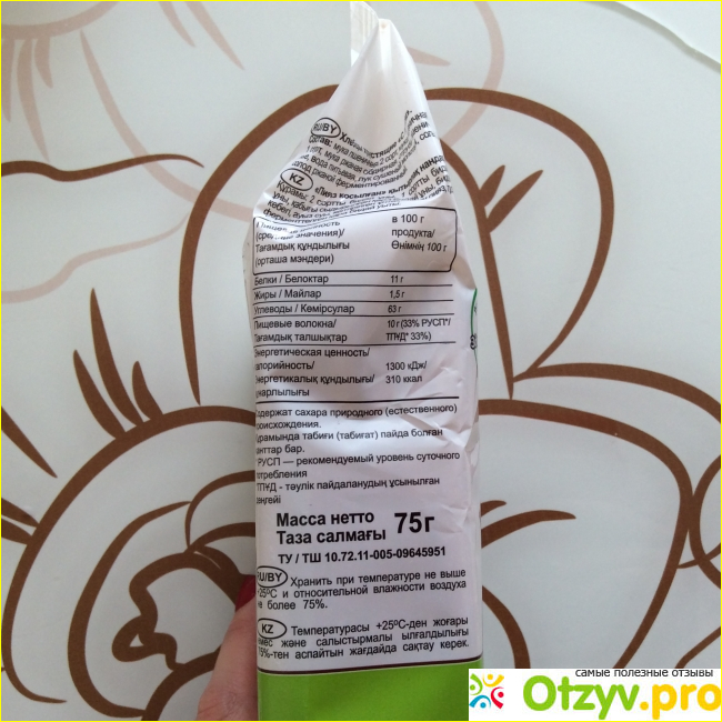 На упаковке производитель заботливо оставил всю необходимую информацию для потребителя. В это число входит состав, который отвечает лично моим требованиям полностью, так как в составе есть только натуральные и полезные компоненты, которые приносит пользу моему организму. Также можно ознакомиться с контактной формацией о производителе, узнать срок годности, правила хранения.