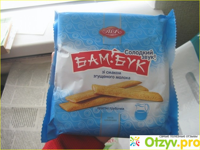 Бамбук бывает с разным наполнением, но больше всего мне пришлось по душе сгущеное молоко. Мне еще нравится есть эти хрустящие трубочки и запивать их холодным молоком из холодильника.