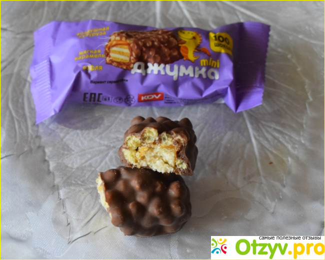 Это хрустящие вафли с мягкой карамелью и воздушной кукурузой, покрытые молочно-шоколадной глазурью.