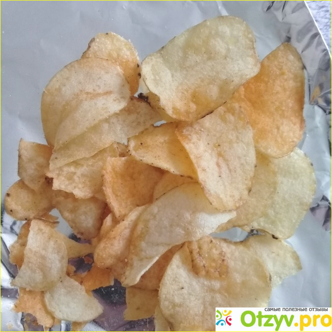 Вкус на самом деле напоминает вкус чипсов из детства. Такое ощущение, что хрустишь настоящей картошкой, а не снеками из сухого картофельного пюре. Сами чипсы очень хрустящие, хорошо поджарены, не пересоленные, с золотистой корочкой. Вкус насыщенный. Состав очень даже натуральный, минимум всякой химии. Да и цена на них почему то довольно низкая. 40 рублей за среднюю пачку таких вкусняшек очень даже радуют. Особенно по сравнению с другими более известными брендами, хотя по вкусу они ничуть не уступают. А на фоне некоторых даже выигрывают.