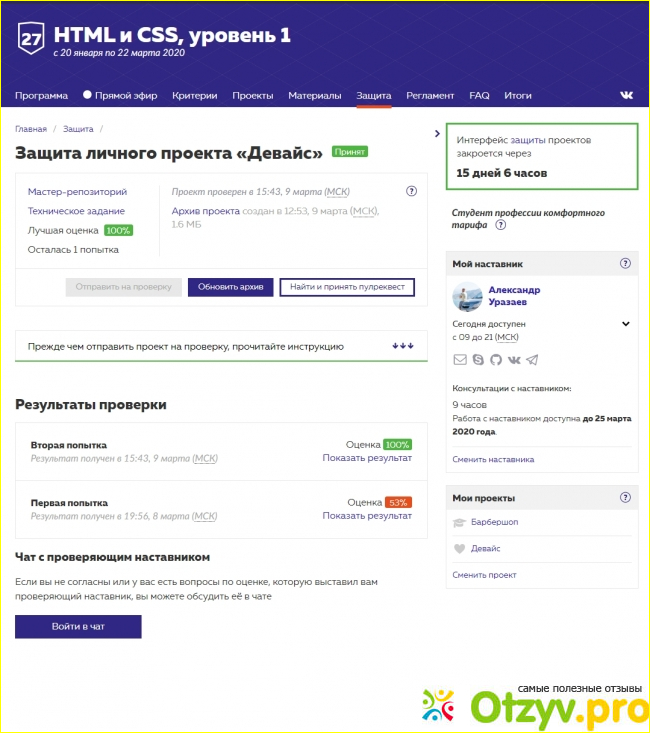 Задания составляются безобразно! Время тратишь не на получение ЗНАНИЙ, а на подборы шрифтов НА ГЛАЗ, и прочую белиберду! На тестовые задания есть лимит, причем толковых объяснений в курсе нет! ЕСЛИ ХОТИТЕ ПОТРАТИТЬ СВОЕ ВРЕМЯ И НЕРВЫ, ТО ИДИТЕ! Я считаю, что сейчас достаточно в интернете действительно БЕСПЛАТНЫХ ОБУЧАЮЩИХ курсов, нежели тратить свое время на такую школоту! Больше всего меня убило то, что невозможно УДАЛИТЬ АККАУНТ! Это у тех, кто УЧИТ ДЕЛАТЬ САЙТЫ! Вызывает у вас доверие такой учитель? Не думаю. что вы захотите оставить свои данные там на вечно.